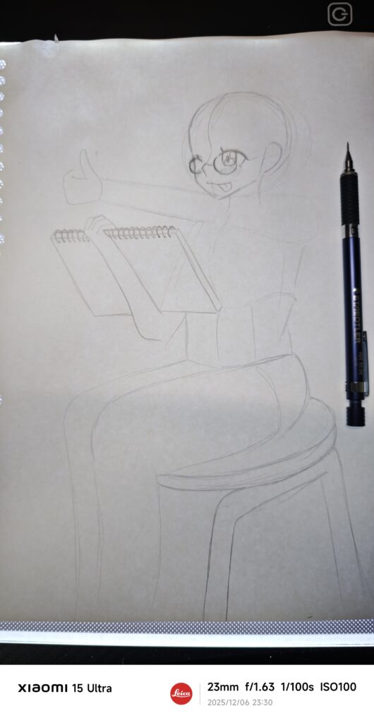 たまには珍しく座っている構図を描いてみる。