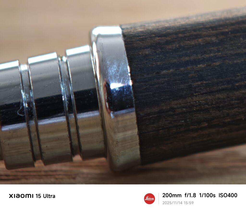 キャップにも木材が使用されています。上面はガイドパイプなどに使われている、光沢のある金属で装飾されています。ただ、S20と違って硬度表示窓がありません。