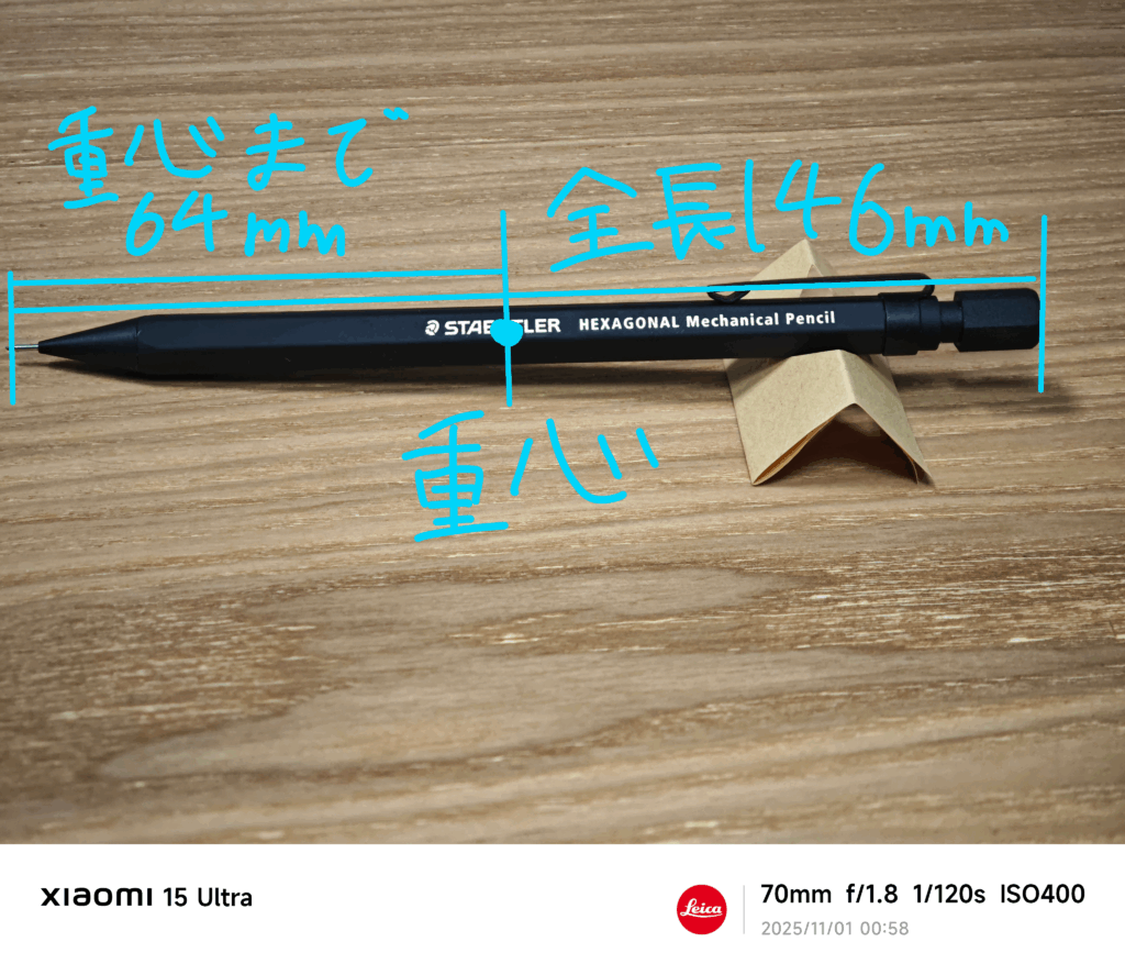 全長が約146㎜。重心は先端から64㎜のところにあります。低重心寄りですね。