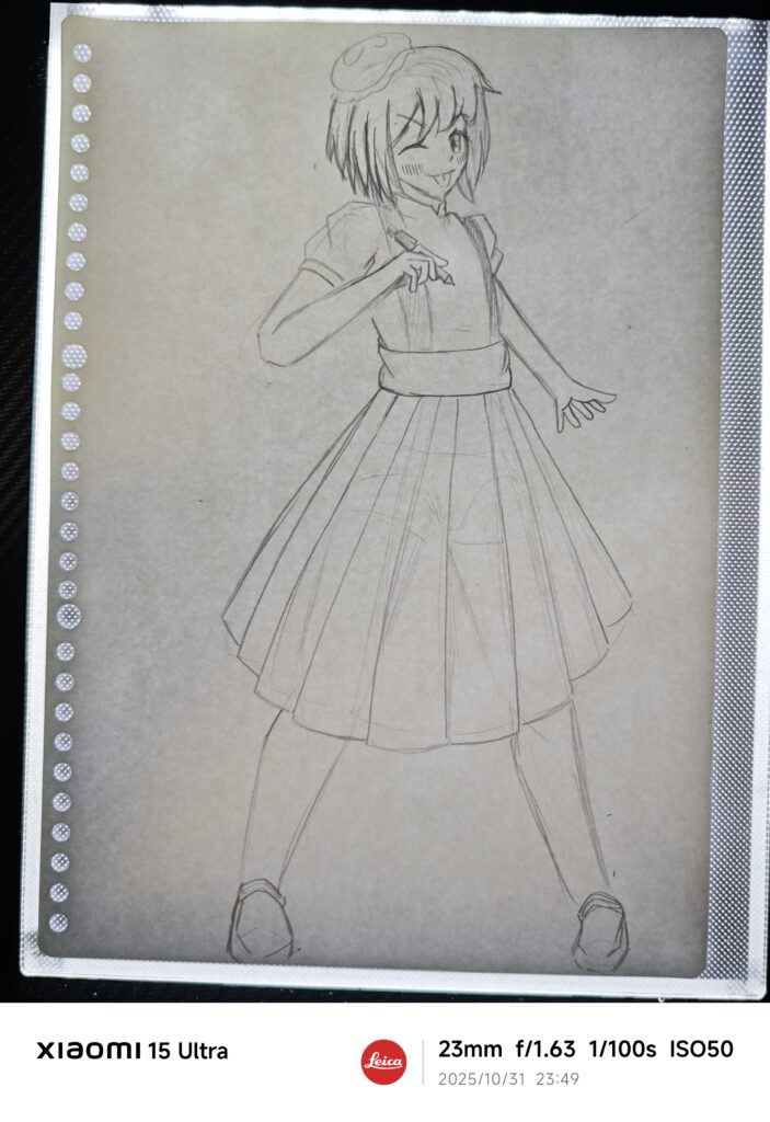 実は顔の描き方を間違えて、下描きごと消してしまったんのでバランスが少しおかしくなってしまった。