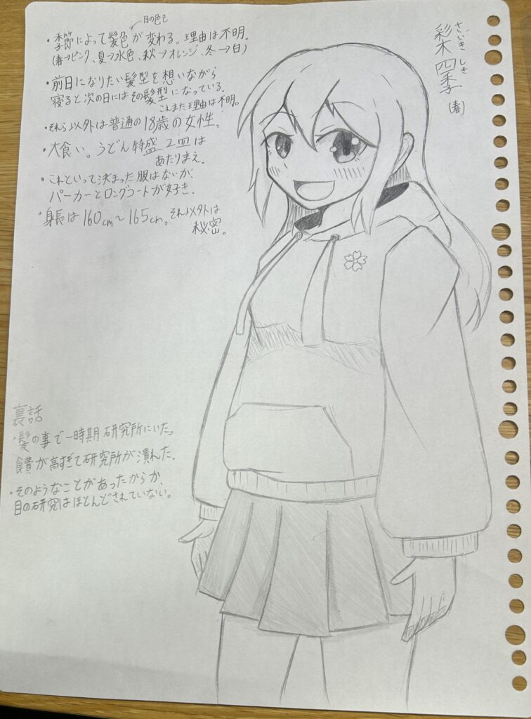 そこから2年ほどたって、2025年1月21日に彩木四季設定資料が制作されたのです。